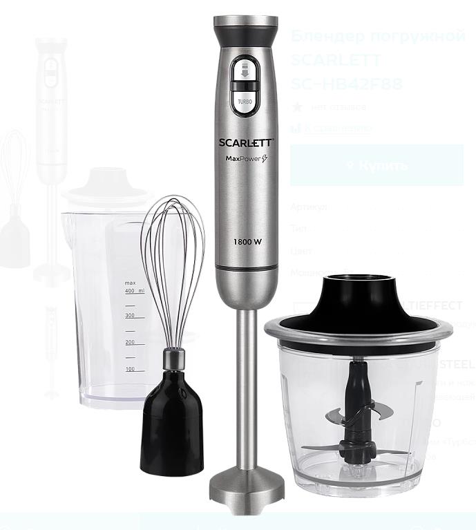 Блендер Scarlett SC-HB42F88 (сталь) (погружной/1800 Вт/серебристый, черный) - Интернет-магазин СОТА: бытовая техника, электроника, товары для дома и др.