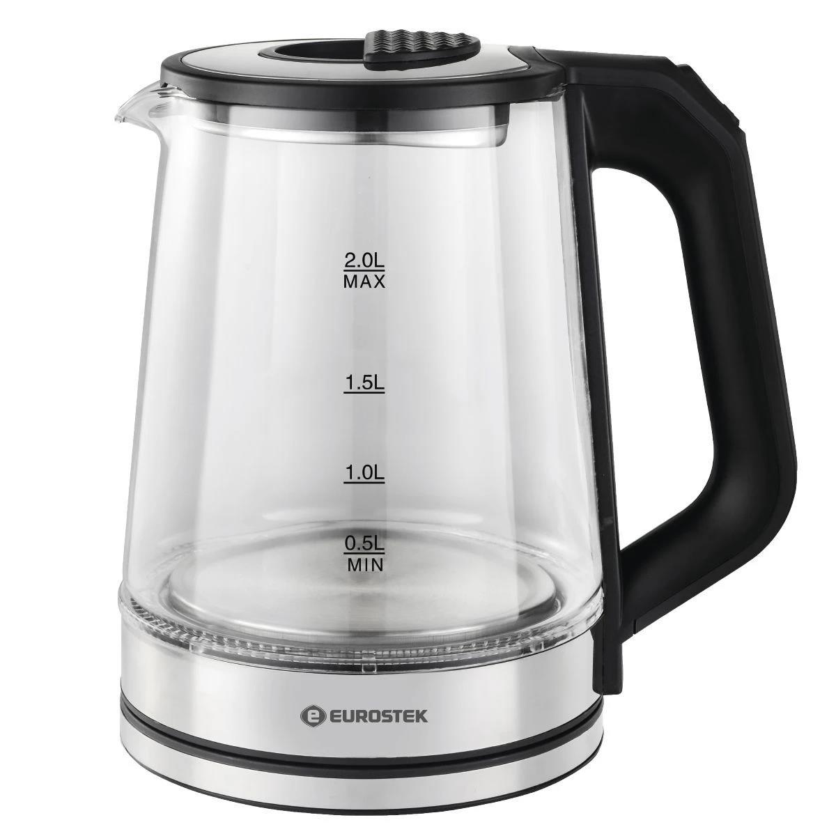 Электрический чайник Eurostek EEK-3002 (1500 Вт/2 л /стекло, пластик/прозрачный, черный, серебристый) - Интернет-магазин СОТА: бытовая техника, электроника, товары для дома и др.