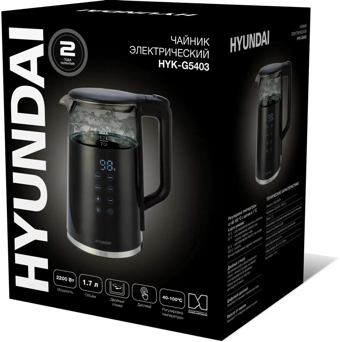 Электрический чайник Hyundai HYK-G5403 (2200 Вт/1,7 л /стекло/прозрачный, черный)
