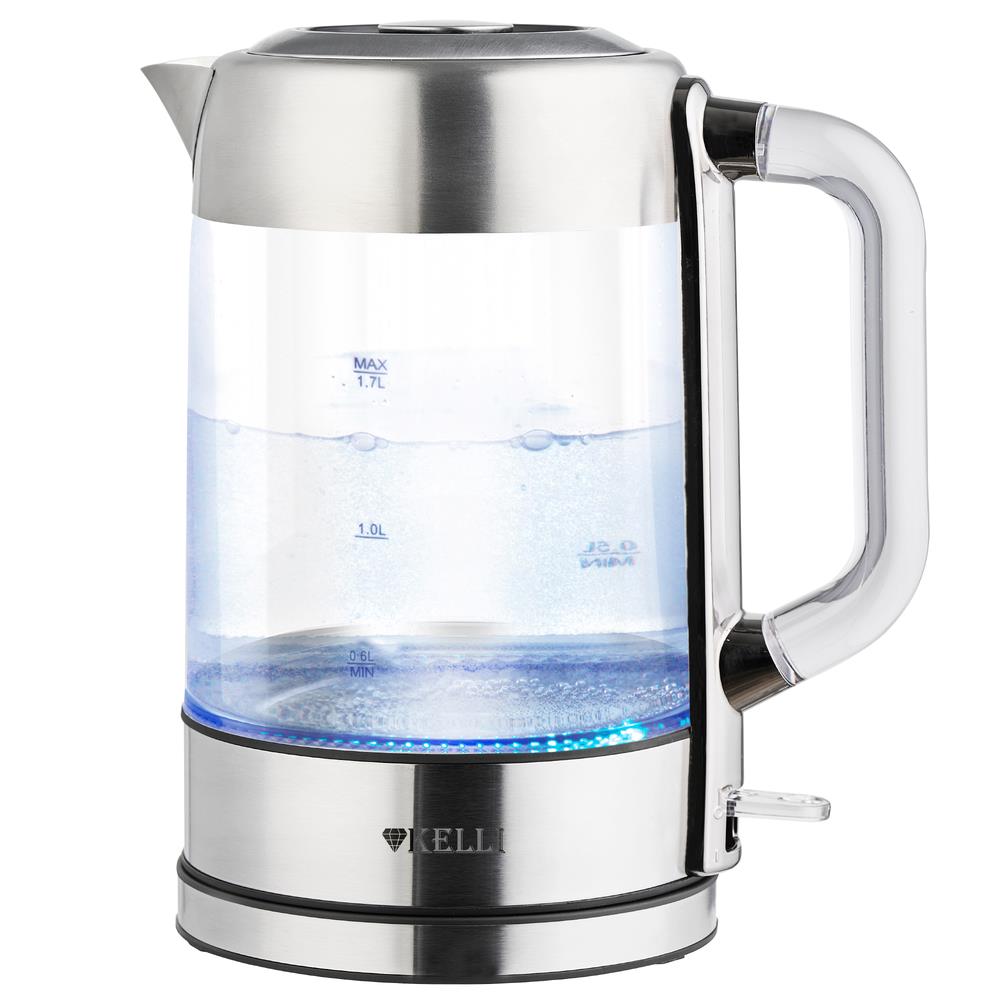 Электрический чайник Kelli KL-1813 (2200 Вт/1,7 л /стекло/прозрачный, серебристый) - Интернет-магазин СОТА: бытовая техника, электроника, товары для дома и др.