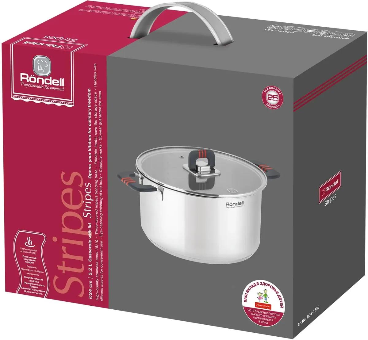 Кастрюля Rondell Stripes RDS-1638 24см, с крышкой, стальной (5,2 л ) - Интернет-магазин СОТА: бытовая техника, электроника, товары для дома и др.