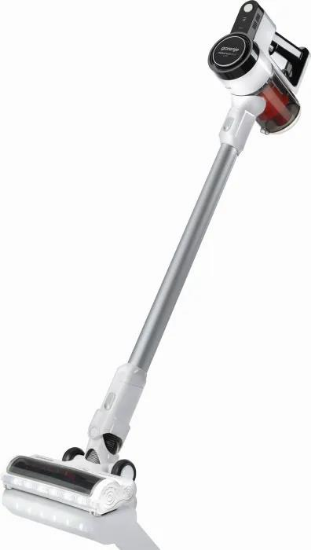 Пылесос Gorenje SVC216FMLW — модель белого цвета с элементами управления на корпусе. Зарядки аккумуляторв хватит до 45 минут работы. Управление мощностью на ручке обеспечивает комфорт эксплуатации прибора.