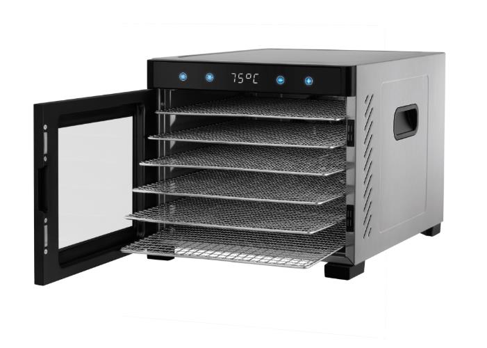 В набор устройства входят 6 решеток из нержавеющей стали, 1 мелкая решетка из пластика для сушки зелени и мелких ягод, а также 1 лист для приготовления пастилы. Сушилка не требует особого ухода, ведь все эти предметы можно мыть в посудомоечной машине.