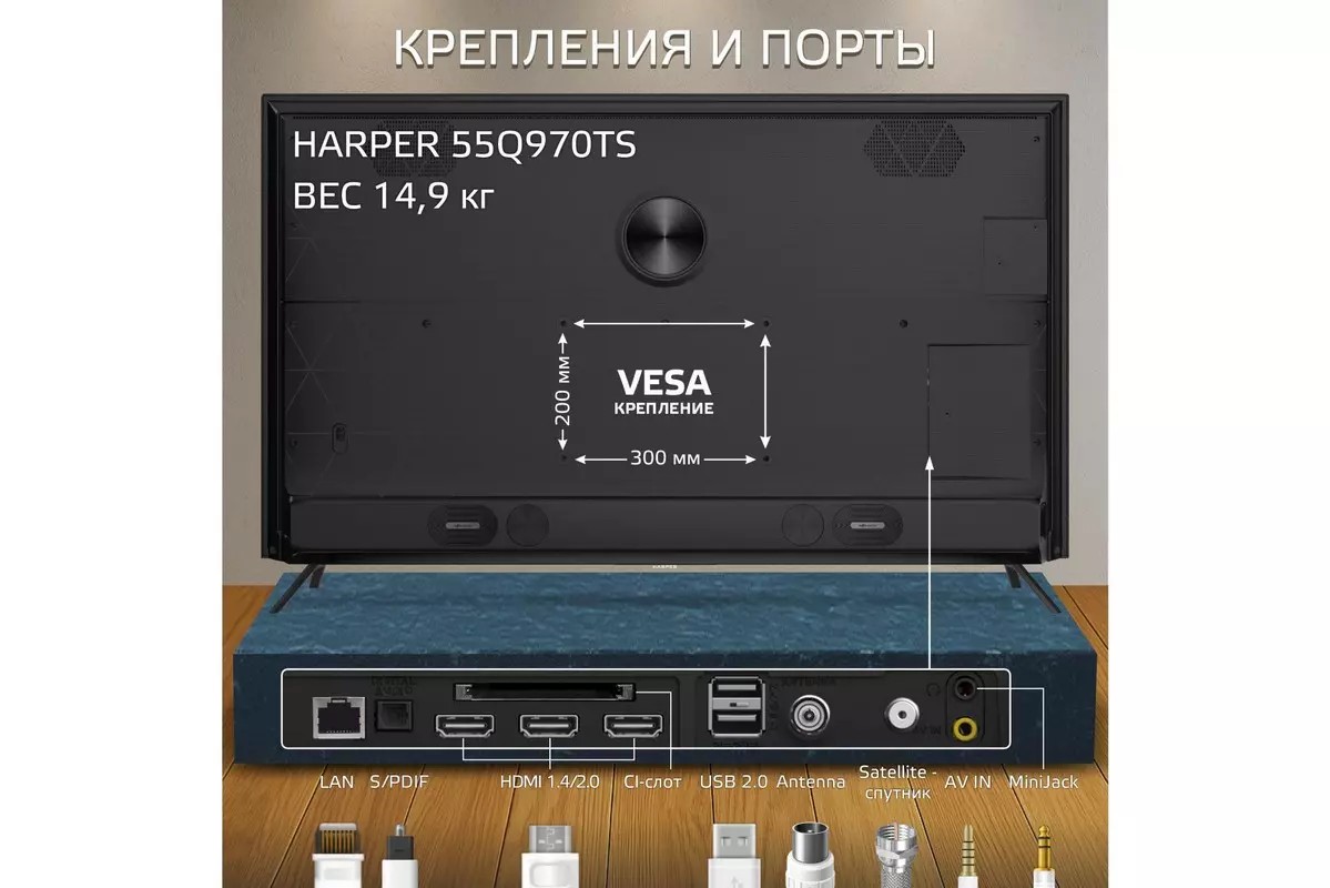 Телевизор Harper 55Q970TS 55" HDR, 4K Ultra HD Smart TV черный - Интернет-магазин СОТА: бытовая техника, электроника, товары для дома и др.