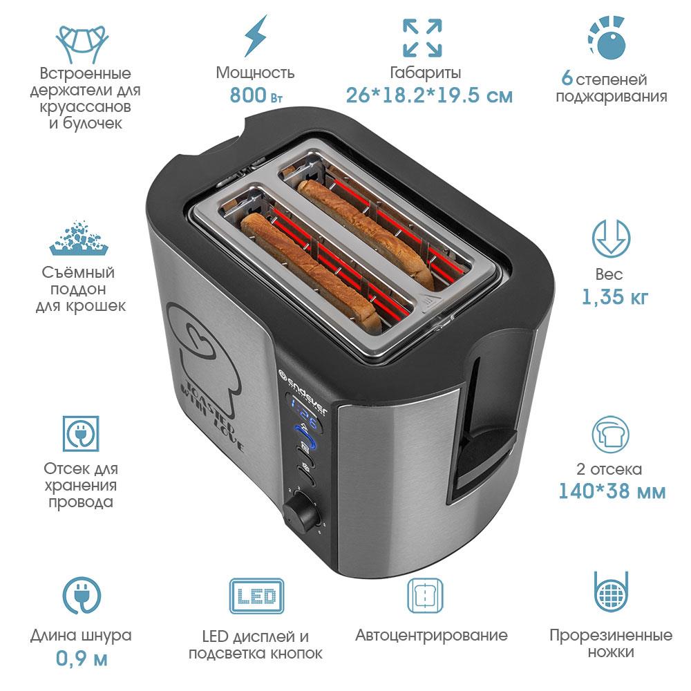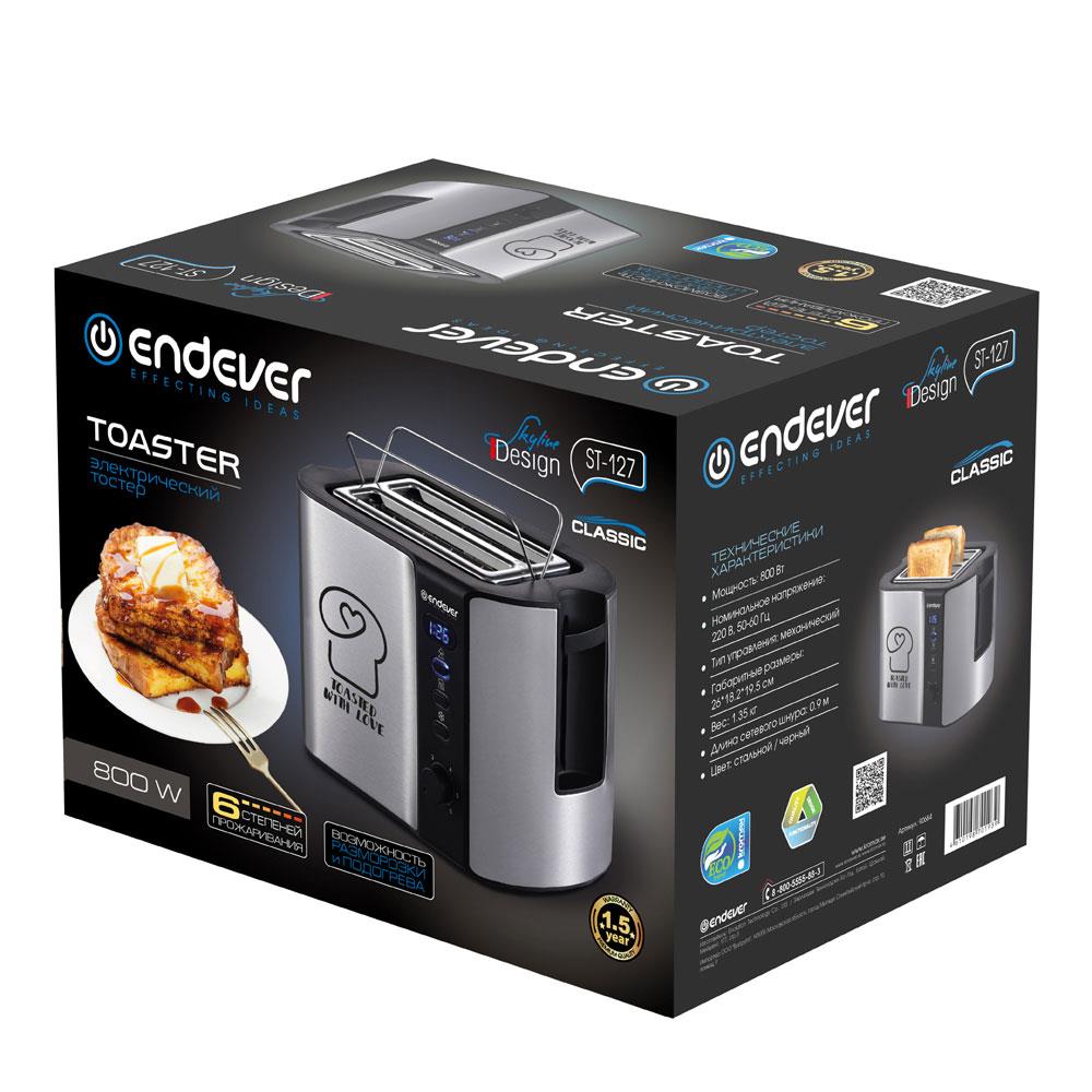 Тостер Endever Skyline ST-127 (800 Вт  черный, стальной) - Интернет-магазин СОТА: бытовая техника, электроника, товары для дома и др.