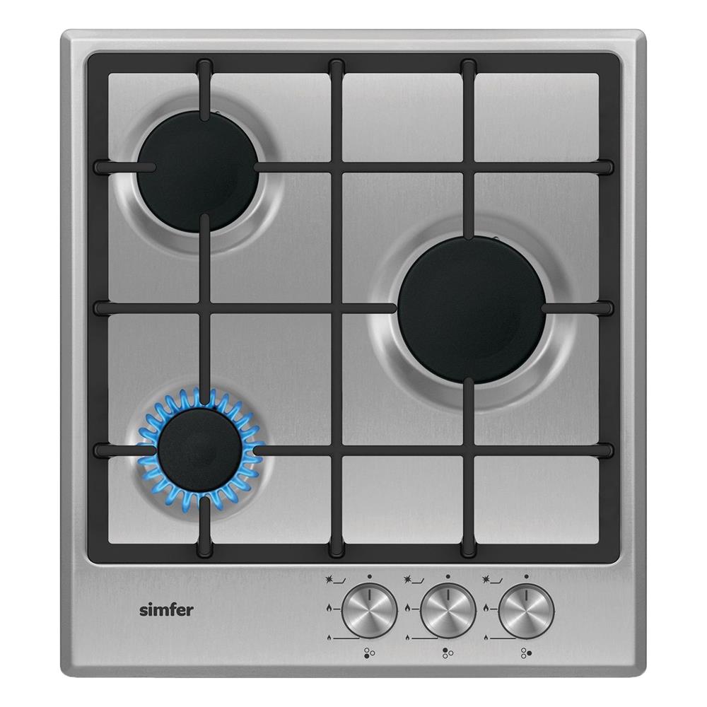 Газовая варочная панель Simfer H45V30M416 - модель, которая благодаря своим компактным размерам органично впишется в интерьер вашей кухни и сделает ежедневный процесс приготовления еды комфортным. Рабочая поверхность выполнена из прочного и долговечного материала - нержавеющей стали. На ней располагаются три конфорки - разные по диаметру и мощности пламени в них. А значит вы сможете выбрать оптимальную конфорку для приготовления разнообразных блюд. В поворотные переключатели встроен электроподжиг, который значительно упрощает работу с панелью.
